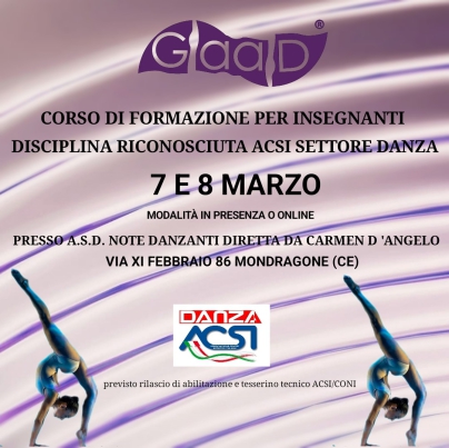 marchio GaaD Ginnastica artistica applicata alla Danza®, previo superamento degli esami.